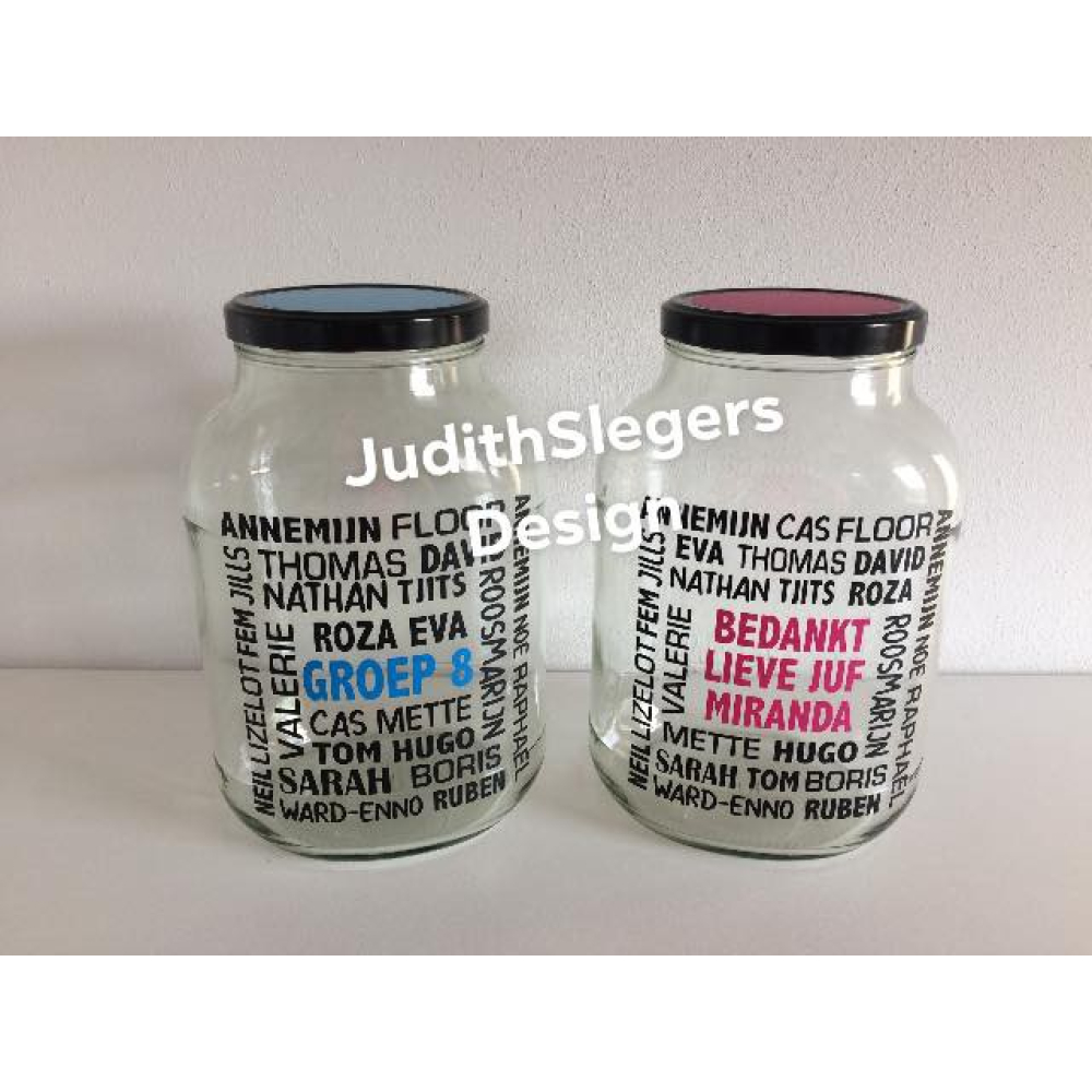 Mooie grote pot met alle namen van de klas erop. €29