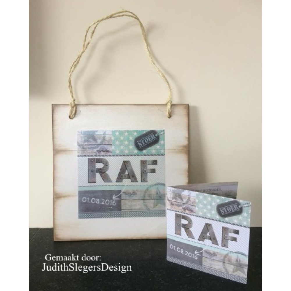 Het geboorte kaartje wordt op het hout geprint/gezeefd.