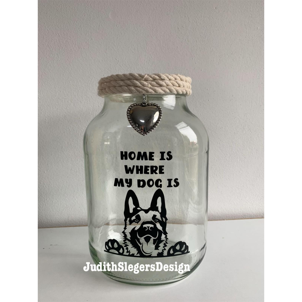 Een mooie grote luxe persoonlijke glaspot, gemaakt voor echte hondenliefhebber.