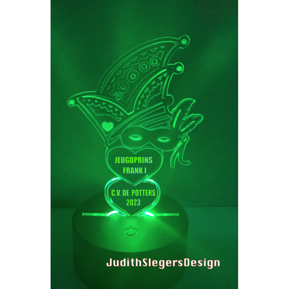 Led-lampje (plexiglas) op houder, met persoonlijke tekst erop.
